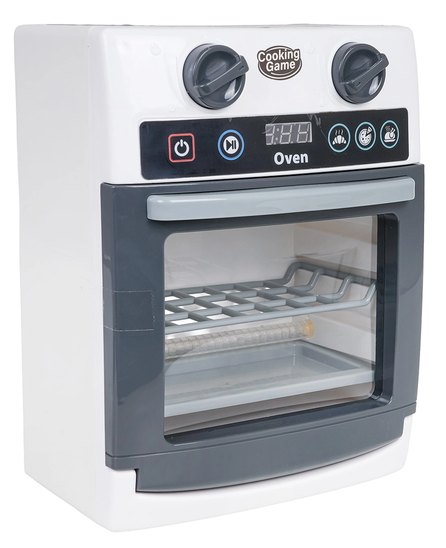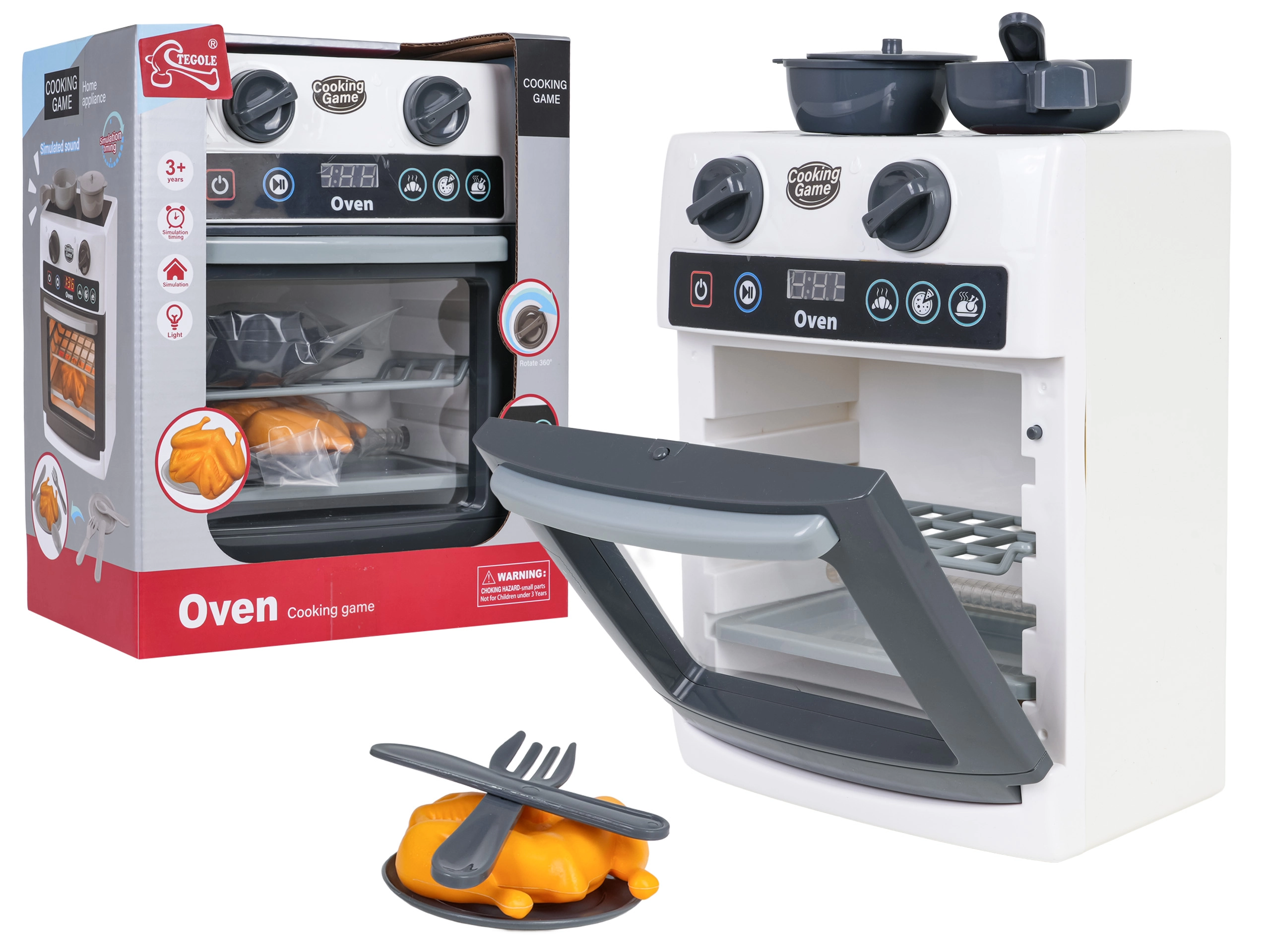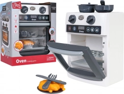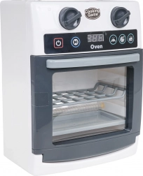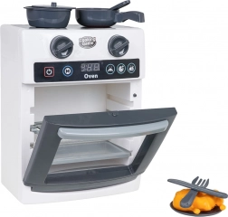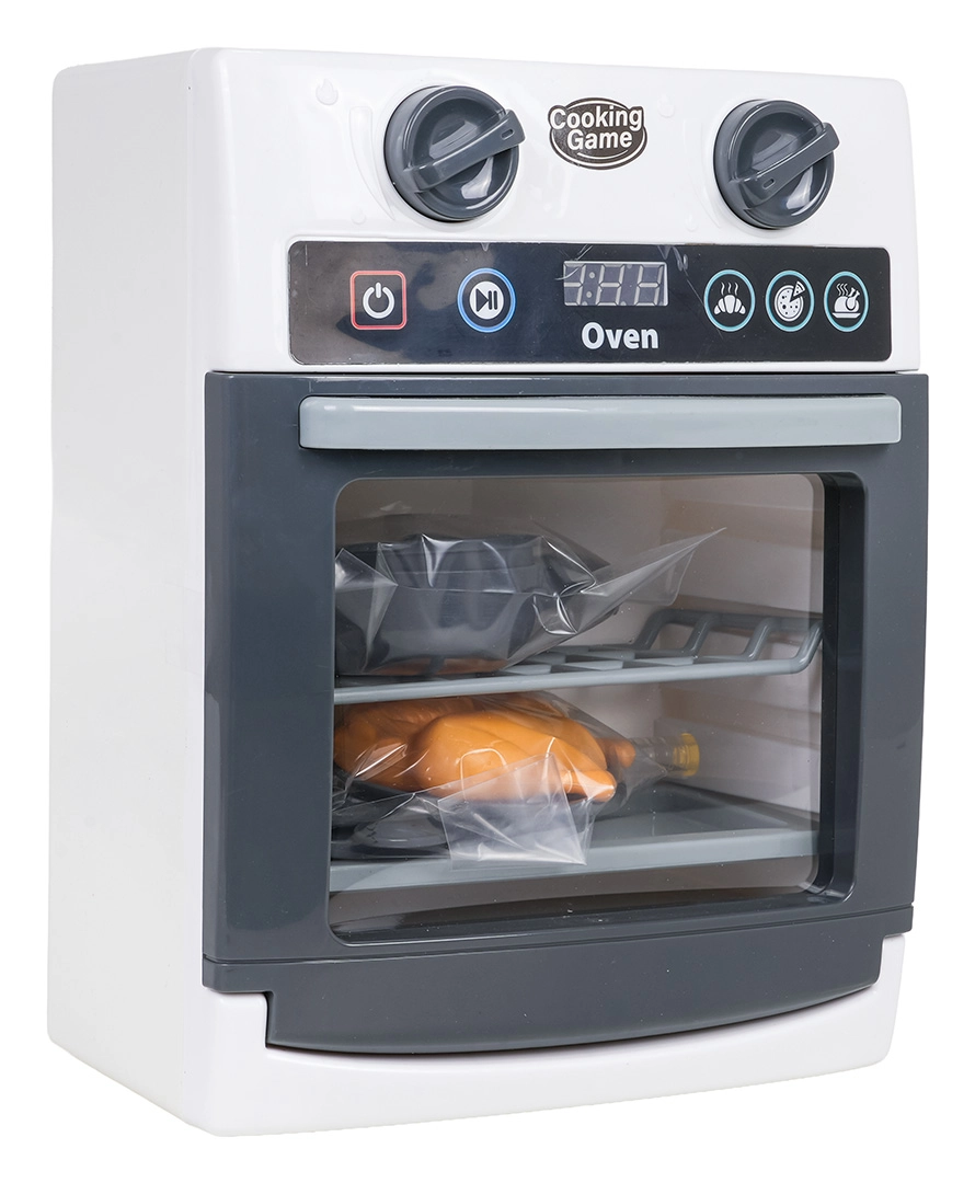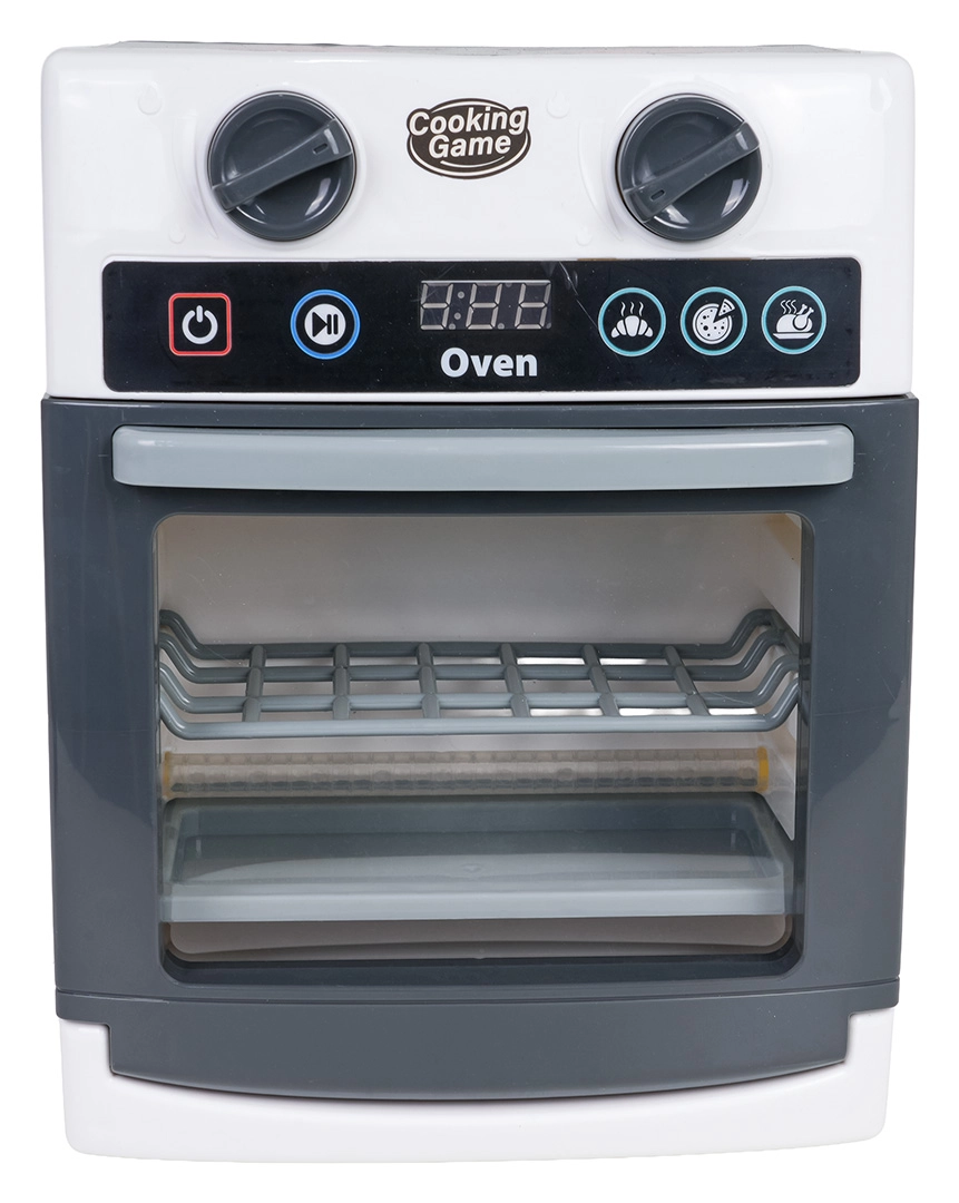 Denne børneovn efterligner troværdigt et rigtigt apparat – den har gennemsigtige låger, bevægelige betjeningshjul og et panel med timer. Under bagning lyser indersiden op, og der høres realistiske lyde ved åbning/lukning af låger, bagning og programafslutning. Rollespil i køkkenet får en ny dimension af kreativitet og fantasi.