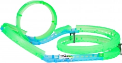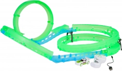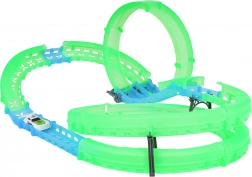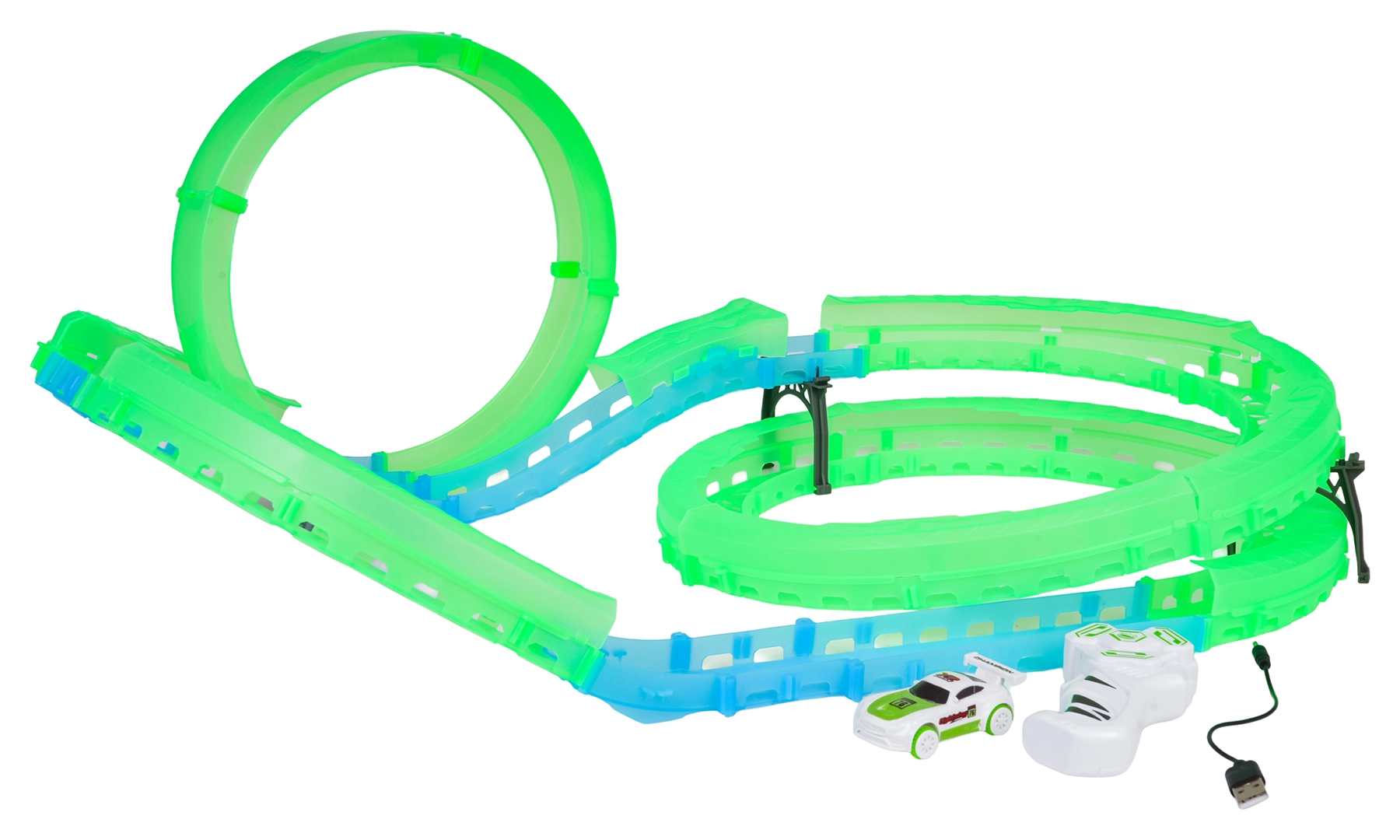 Denne store lysende racerbane forvandler børneværelset til en actionfyldt rundbane. De fluorescerende dele lyser flot efter lysopladning, og bilen med LED-effekter skaber lysstriber under kørslen. Med de enkle samlestykker bygger børnene nemt deres egen bane og kan straks køre løb.