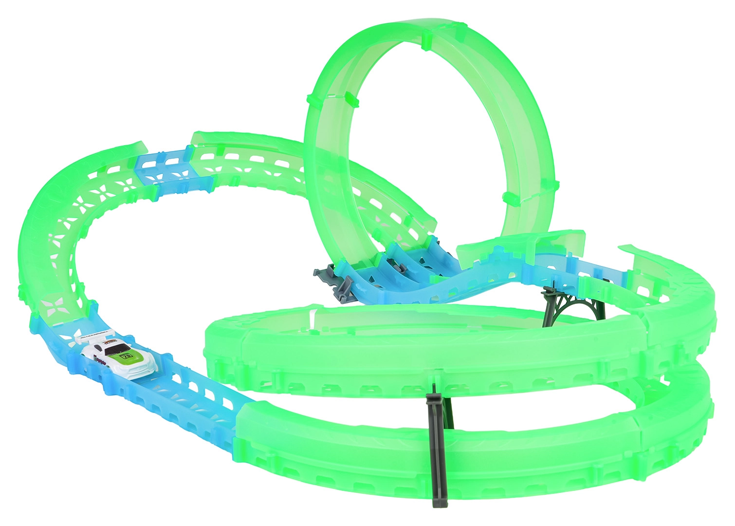 De fluorescerende dele lyser efter opladning med lys, så løbene er spændende selv med slukket belysning. Fantastiske visuelle effekter og endnu mere sjov.