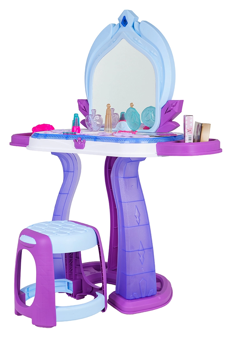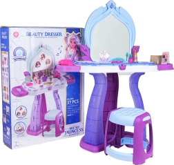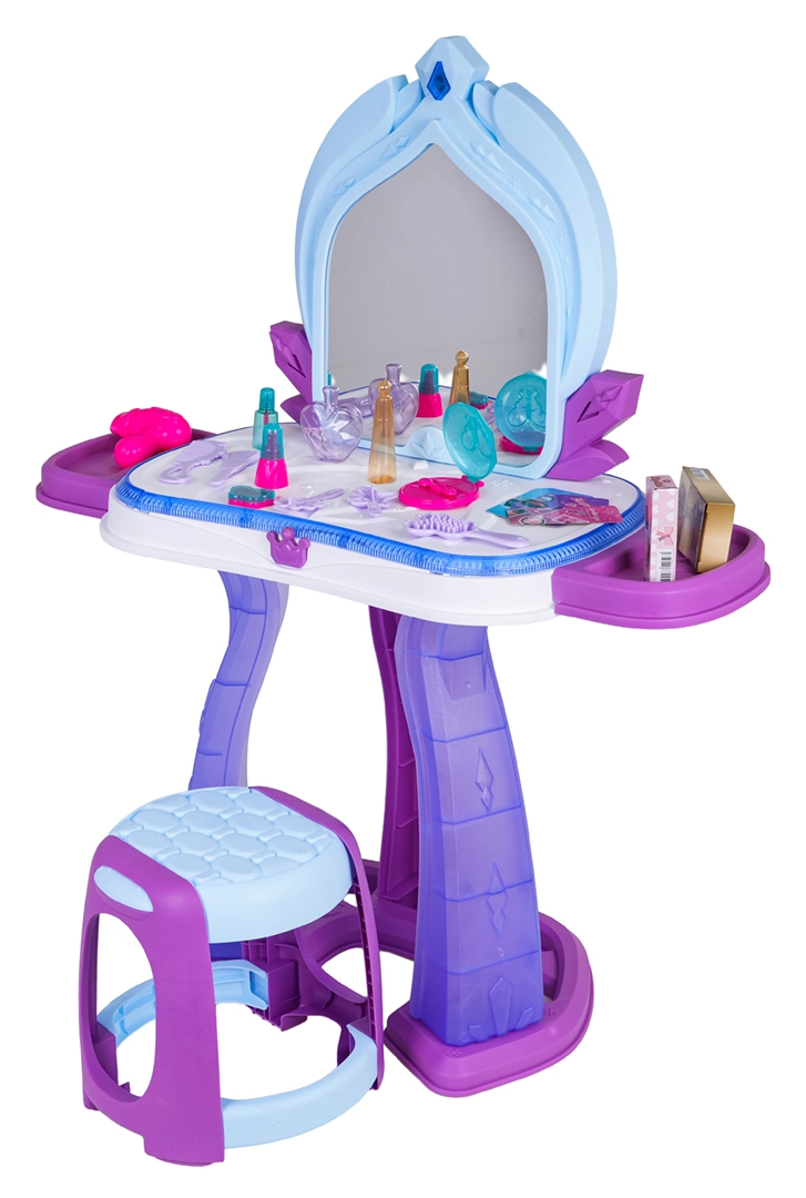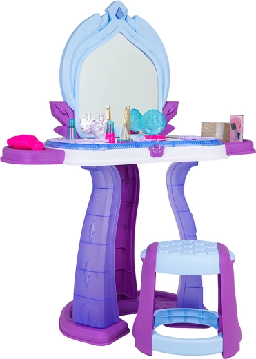 Sættet inkluderer en skammel og en række tilbehør som føntørrer, kam, børste, spænder og “kosmetik” til sikker leg. Sminkebordet er fremstillet af kvalitetsmaterialer, der er sikre for børn, i attraktive farver, som motiverer til selvstændig og kreativ leg.