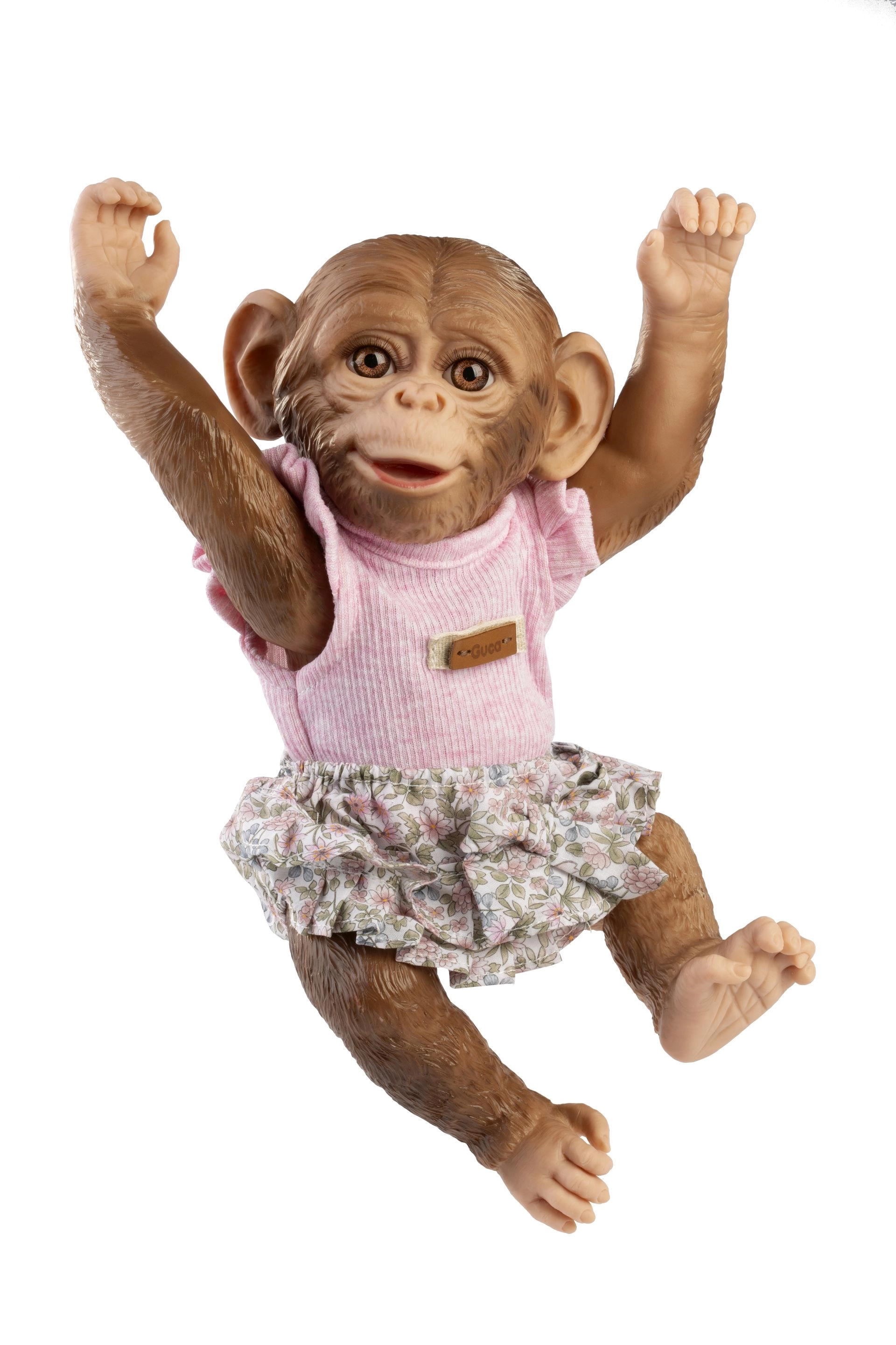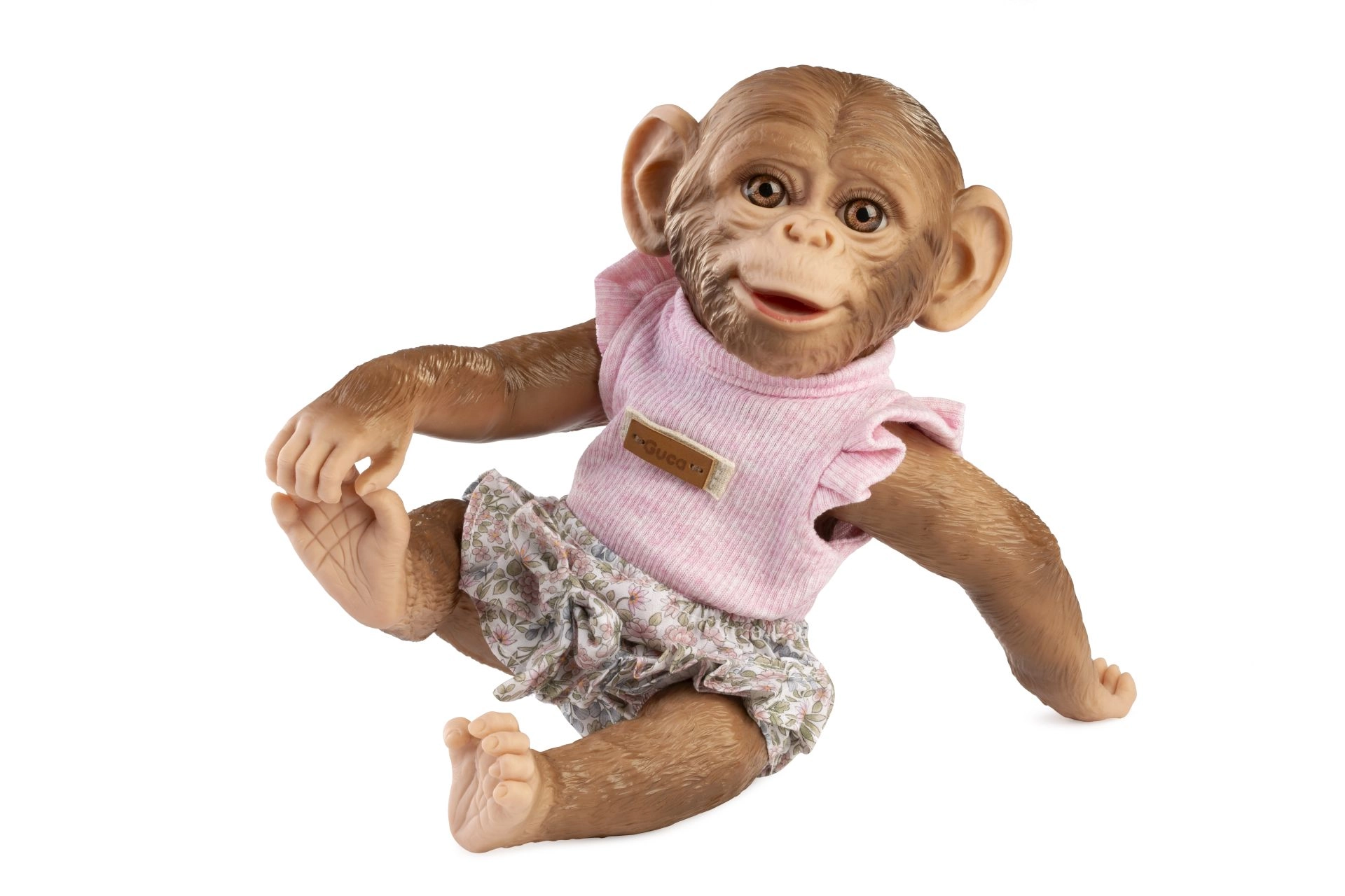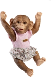 Forkæl din Reborn abe-baby med nyt pift med dette sarte sæt tøj i størrelse 32 cm. Den lyserøde top med dekorative flæser og de blomstrede underbukser passer smukt sammen og er nemme at tage på. Den praktiske sut med rem understøtter realistisk leg og omsorg for “babyen”.