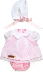 Tøjet er håndlavet i Spanien og tilpasset til dukker/abe-babyer i størrelsen 32 cm. Takket være kvalitetsforarbejdning og bløde tekstiler egner det sig til daglig leg og samlerudstilling. Pakningen er praktisk i en plastpose på kartonunderlag.