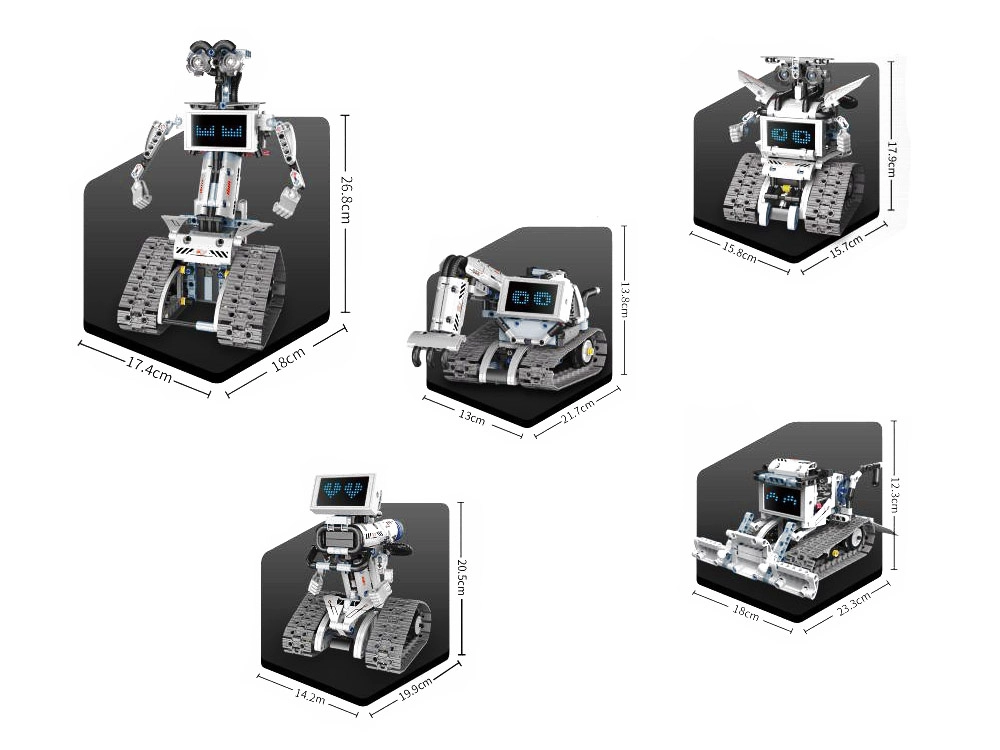 Dette moderne byggesæt indeholder alt, hvad børn behøver for at bygge og styre op til fem forskellige robotmodeller fra ét sæt dele. Takket være fjernbetjeningen, bæltdrift og det markante “ansigts”-display får små ingeniører timevis af leg og læring.