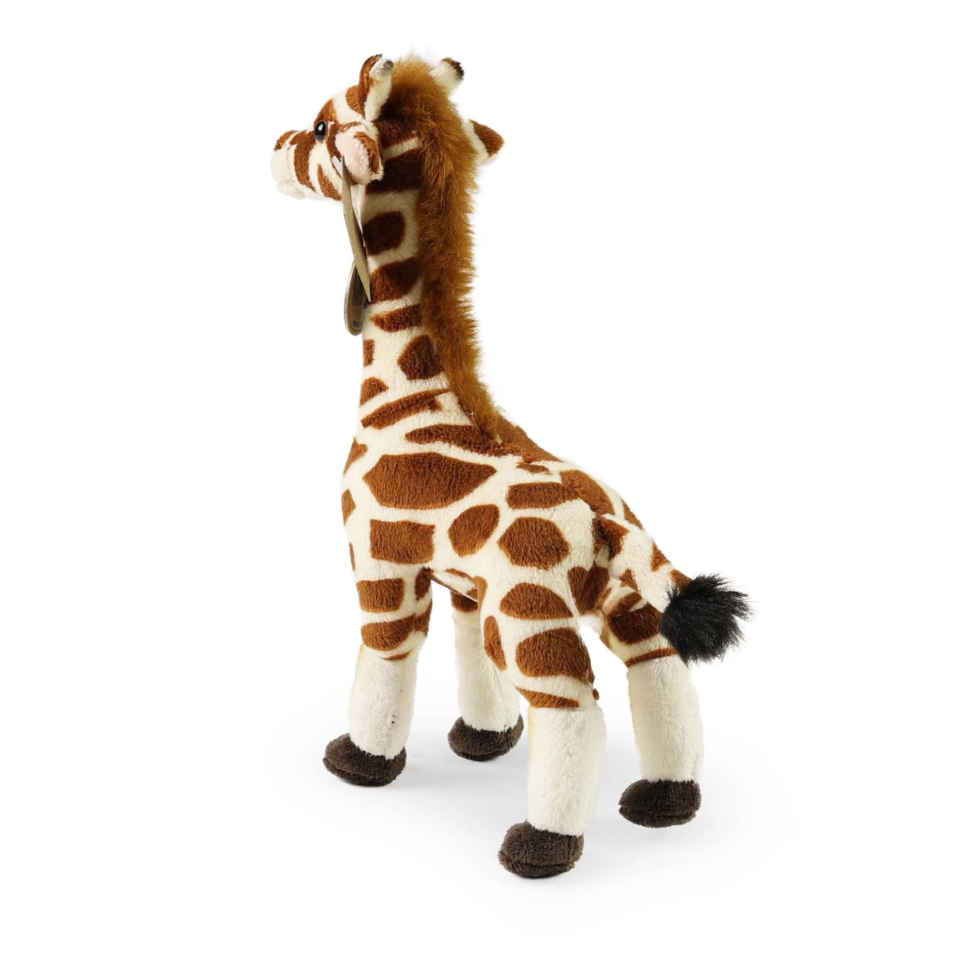 Den fine plys og håndlavede detaljer giver giraffen et livligt udtryk og en behagelig følelse, som børn vil elske.