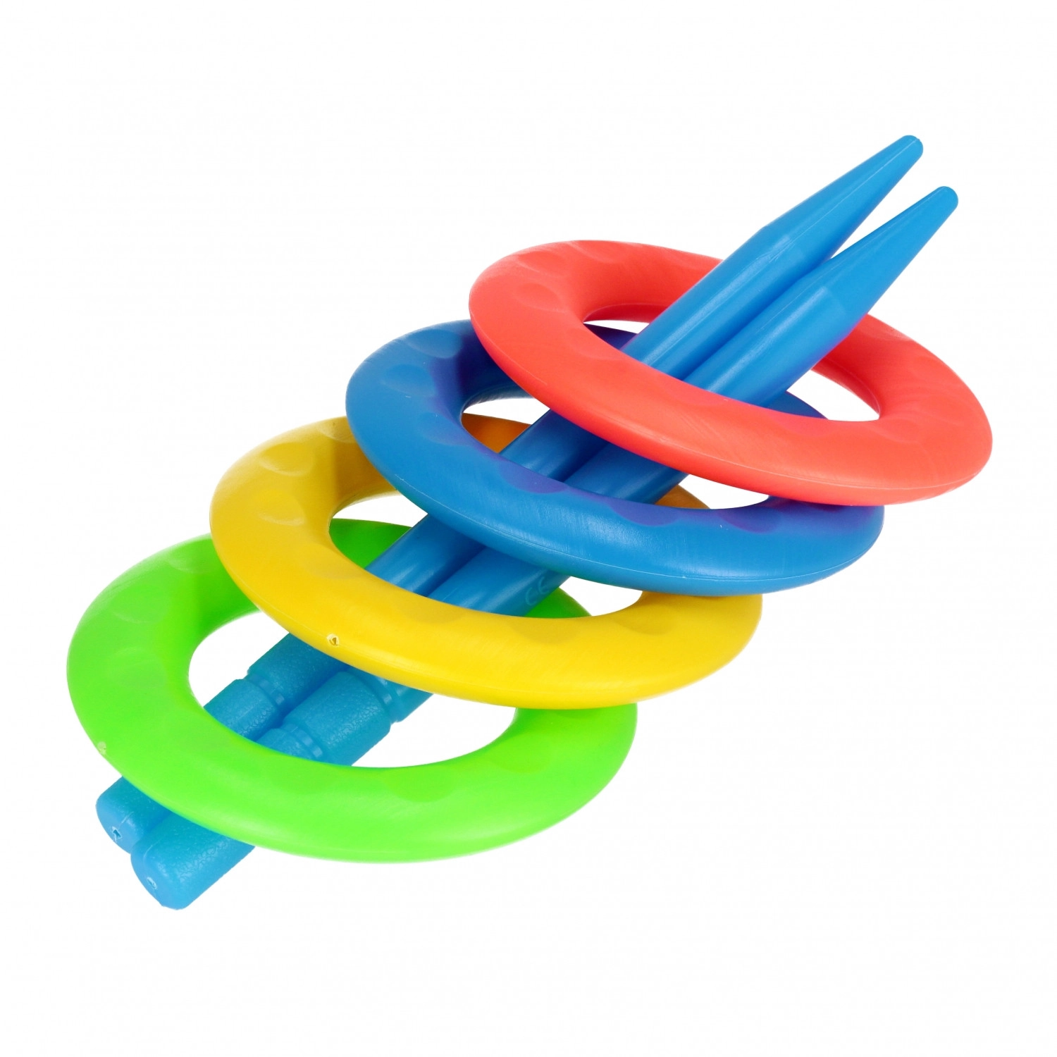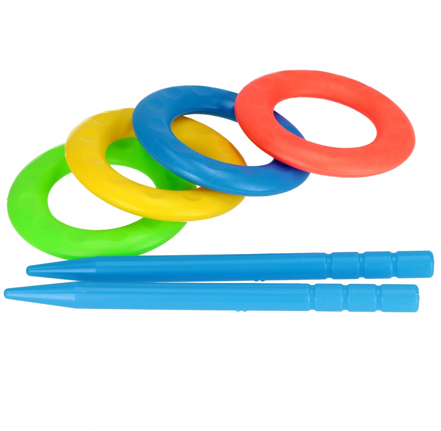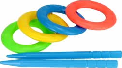 Pakken består af 2 stave og 4 ringe, så det er let at arrangere konkurrencer for både enkeltpersoner og hold. Takket være de kompakte mål kan sættet nemt tages med i haven, i parken eller på ferie.