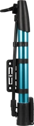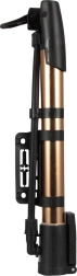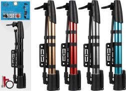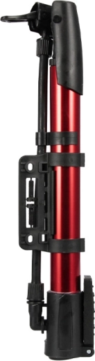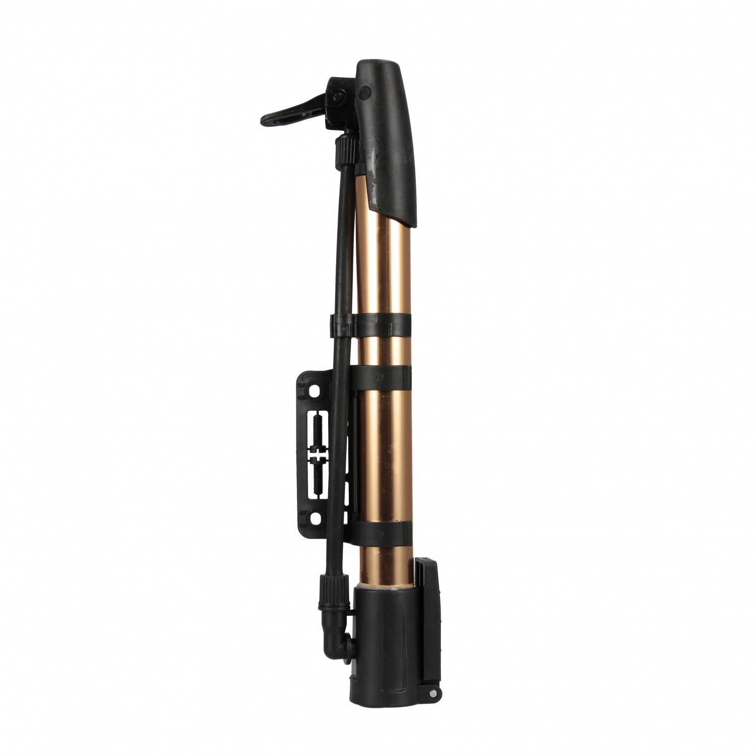 Let og bærbar pumpe med metalrør og fleksibel slange er en fremragende hjælper for både cyklister og familier med børn. De kompakte mål gør den nem at bære i rygsækken eller montere på cykelstellet ved hjælp af den medfølgende holder.