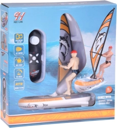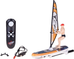 Fjernstyret windsurfer bringer actionfyldt sjov til badekar, pool og sø. Takket være LED-belysning kan den ses selv i skumringen, realistisk sejlbevægelse giver en tro køreoplevelse, og den ergonomiske controller muliggør præcise manøvrer frem/tilbage og til højre/venstre. Vandtæt konstruktion og nem parring efter nedsænkning i vand = klar til sejlads med det samme.
