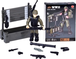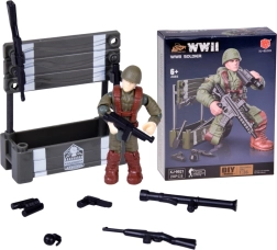 Saml en realistisk figur af en soldat fra perioden 2. verdenskrig af 28 dele. Byggesættet er ideelt til fans af militaria, historie og byggesæt. Den færdige figur har bevægelige lemmer, drejeligt hoved og torso, og takket være den detaljerede udførelse ser den tro og autentisk ud. Inkluderer også tilbehør som kasse, våben og granater.