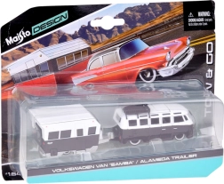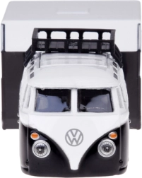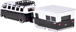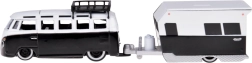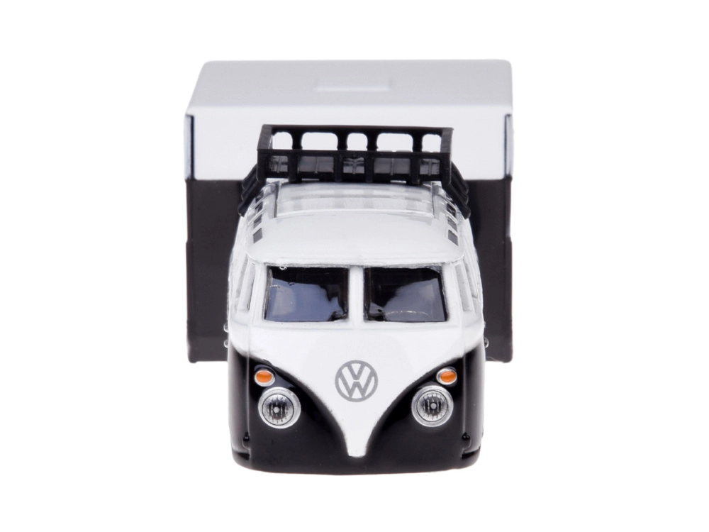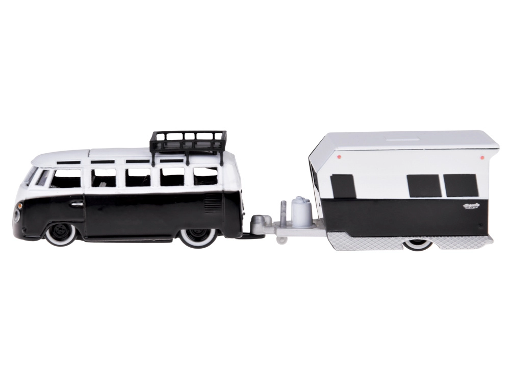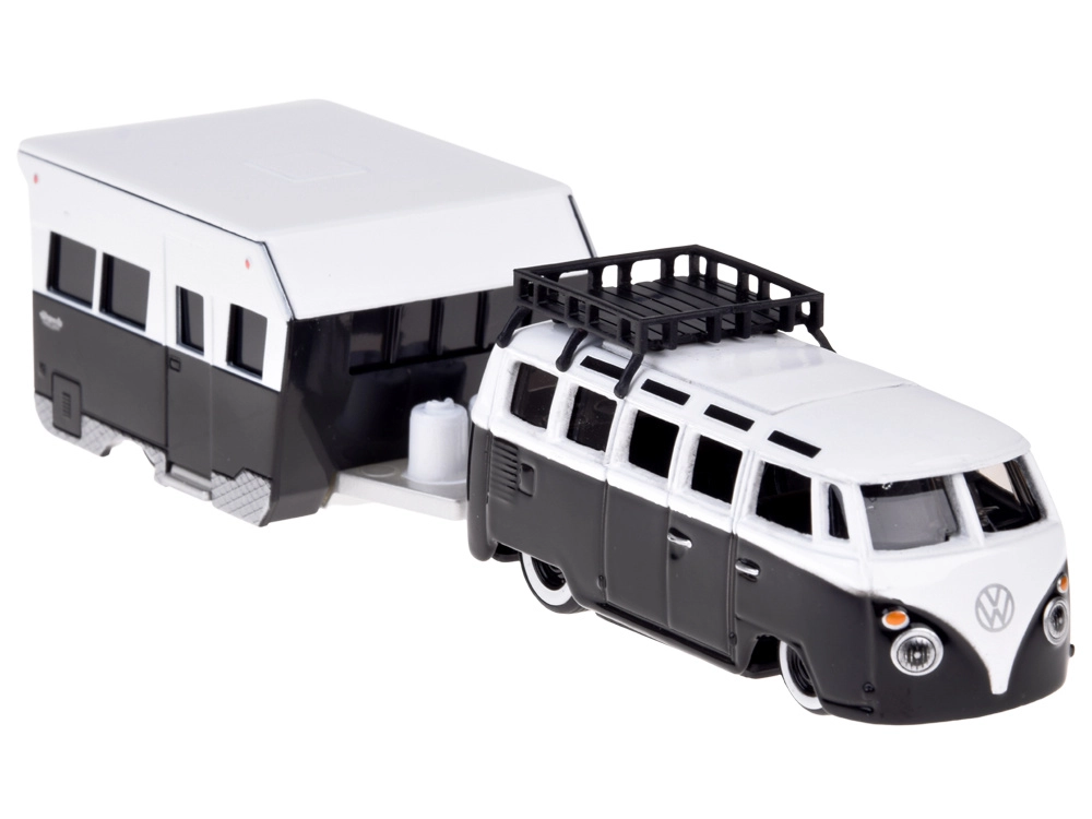 Stilfuldt samlersæt i skala 1:64, der kombinerer den ikoniske VOLKSWAGEN Van Samba og en realistisk campingvogn. Metalkarosseri, detaljeret udførelse og en aftagelig påhængsvogn sikrer flot udseende på hylden og sjov leg. Sort‑hvid farvekombination, funktionelt træk og troværdige detaljer gør den til en perfekt gave til samlere og elskere af klassiske køretøjer.