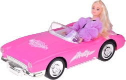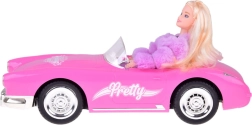 Med følger en elegant dukke med langt blond hår, glitrende kjole og lyserød/lilla pelsjakke, som giver hver køretur ekstra flair. Børn kan tilpasse køretøjet med klistermærker og dermed udvikle både fantasi og sans for detaljer.