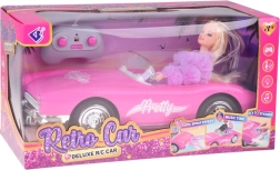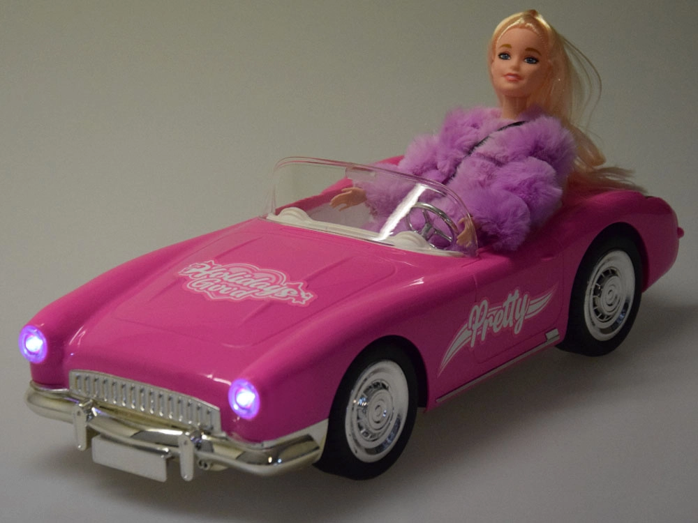 Oplev charmen ved klassisk design i en moderne udgave. Den lyserøde retro cabriolet med dukke bag rattet er perfekt til børn, der elsker stil, mode og kreativ leg. Bilen tilbyder fjernbetjening, lysende forlygter og lyd-/musikeffekter for en endnu større køreoplevelse.