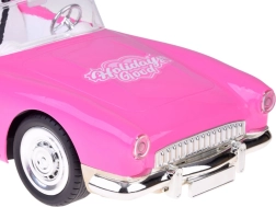 Stilfuld lyserød retro cabriolet med elegant dukke, der byder på fjernbetjent køreleg, lys- og lydeffekter samt rigt tilbehør. Børn vil elske cabrioleten med kromdetaljer, muligheden for kørsel frem/tilbage og styring samt den genopladelige batteripakke med USB-opladning.