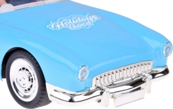 Denne blå retro-cabriolet bringer stemningen af klassiske biler ind på børneværelset. Takket være fjernbetjeningen er kørslen glidende og sjov – bilen kører frem og tilbage og drejer til højre og venstre. Forlygterne lyser under kørslen, og muntre lydeffekter giver ekstra energi til hver tur.