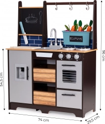 Legekøkkenet er ideelt til at udvikle fantasi, kreativitet og manuelle færdigheder. Takket være kridttavlen kan de små chefkokke skrive dagens menu, indkøbsliste eller navne på retterne.