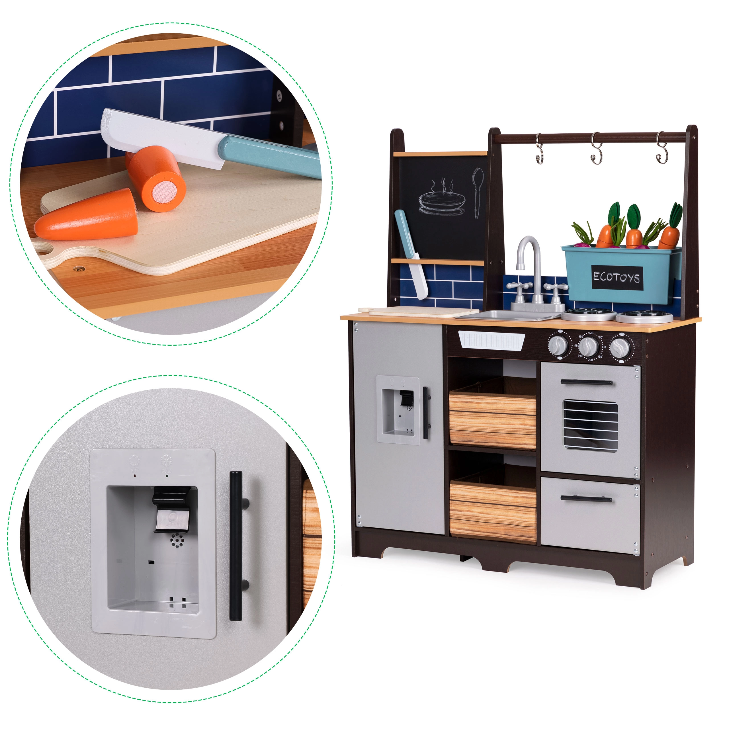 Opdag et gennemtænkt børnekøkken, hvor børn kan lege ægte madlavning. Realistiske elementer som komfur med drejeknapper, ovn, vask med vandhane og vanddispenser med lydeffekt engagerer hele familien i legen. Den robuste trækonstruktion og sikkert afrundede kanter sikrer tryg og behagelig leg.