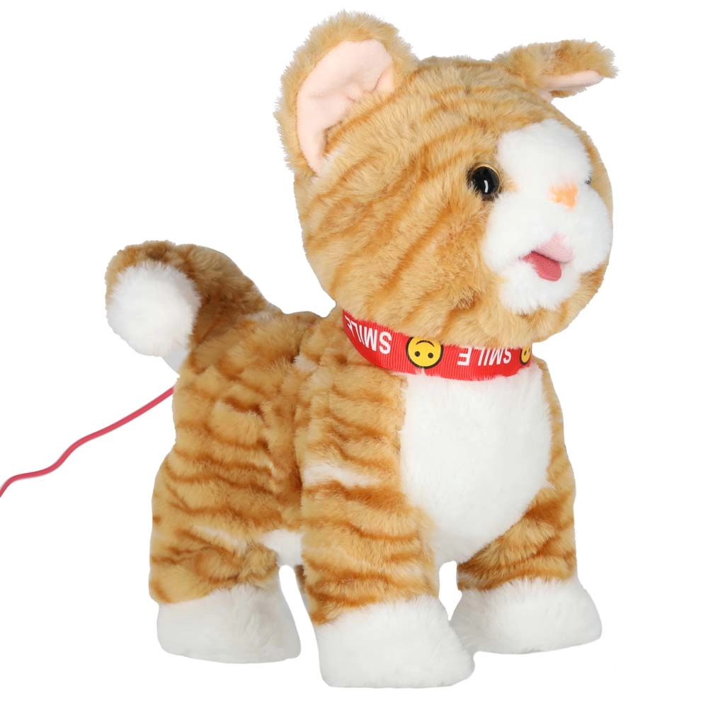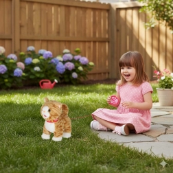 Leder du efter en krammevenlig legeting, som samtidig støtter fantasi og aktiv leg? Denne interaktive kat har en blød, behagelig, pelsklædt krop, en farverig halsrem og en praktisk håndcontroller formet som en pote. Ved tryk på knappen går katten og ledsager gangen med lyde og melodier.