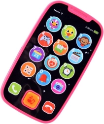 Telefonen tilbyder realistiske funktioner til telefonleg – grøn knap til opkald og samtale, rød til optaget-tone, og der er lyde af lommeregner, kamera og alarm. Tasterne 1–3 giver dyrelyde (fugl, and, abe), de øvrige taster aktiverer spillekonsol, post, filmeffekter, julesang, hjerteslag og ringetone. Den orange knap med en node tænder lyset og afspiller glade sange.