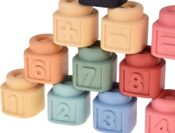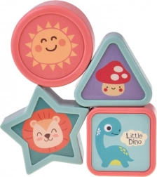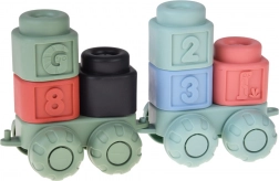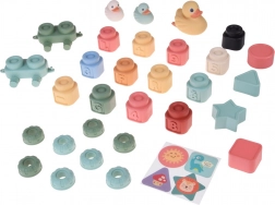 Dette alsidige læringssæt kombinerer byggeri, sortering og sansestimulerende leg. De bløde, sammenklemelige klodser med sikkert afrundede kanter er lette at holde, skånsomme mod gummerne, og nogle elementer piber blidt ved tryk – det vækker barnets nysgerrighed og forlænger den fokuserede leg.