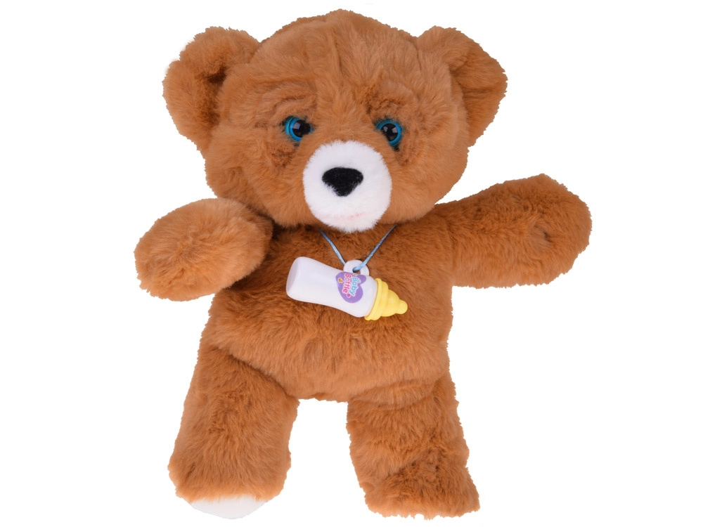 Den søde interaktive bjørn er en blød krammeven, der reagerer som en baby. Efter at være blevet fodret med flasken laver den drikkelyde, griner, græder, brummer, sender kys og lukker og åbner øjnene. Takket være den kompakte størrelse kan barnet tage den med overalt og nyde blid, udviklende rolleleg fuld af omsorg.
