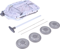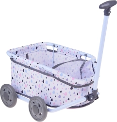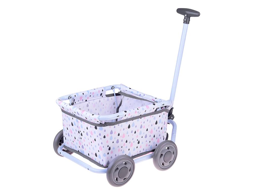 Denne stilfulde vogn med pastelfarvet dråbemønster er ideel til daglig leg, ture rundt i hjemmet og i haven. Den lette metalramme og den bløde tekstilkurv giver behagelig plads til dukke, bamse og småting.