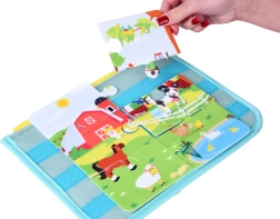 Hver side tilbyder en anden type aktivitet: fra påklædning og håndtræning, over puslespil og talindlæring, til kalender, vejr og tid. Sættet indeholder også tal og matematiske tegn til de første opgaver. Farverige illustrationer med bondegård og dyr fanger interessen og støtter genkendelse af farver og former.