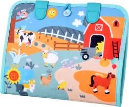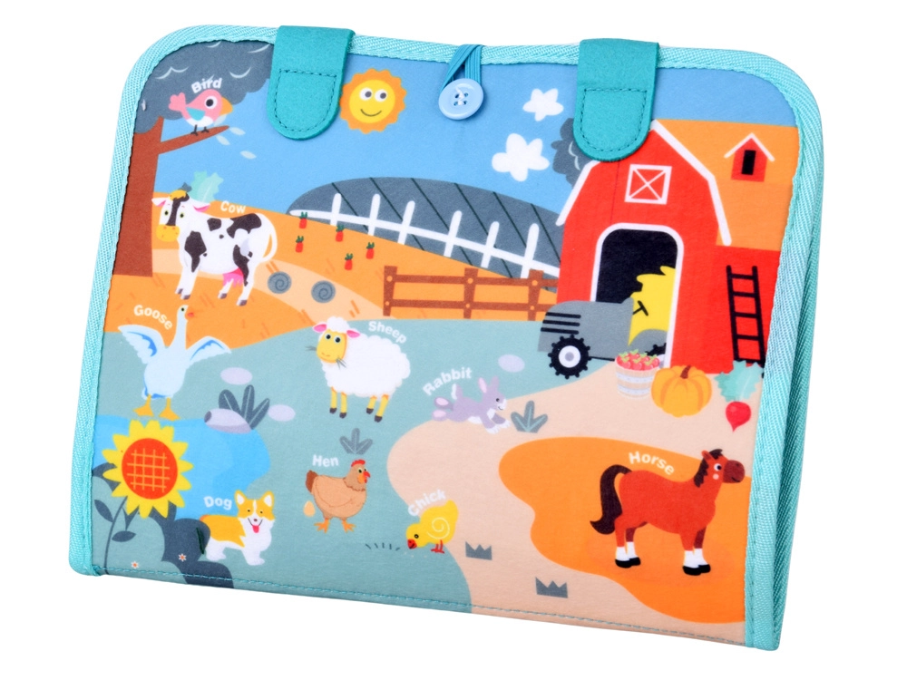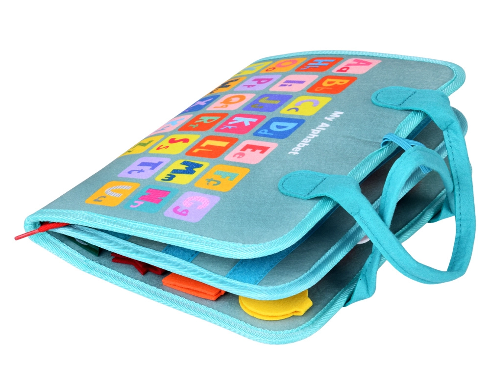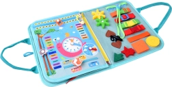 Oplev et smart læringslegetøj inspireret af Montessori-tilgangen. Den bløde filtbog med lukning med elastik og knap gemmer på tematiske sider fulde af bevægelige elementer: ur med visere, lynlåse, spænder, snørebånd, tandhjul, skyde-elementer, former og tal. Barnet træner naturligt finmotorik, koncentration og selvstændighed – uden skærme og hvor som helst på farten.