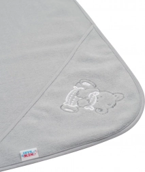 Gør hvert bad til en hyggelig rutine. Baby-frottéhåndklædet med hætte byder på fremragende sugeevne, blid mod følsom hud og komfort takket være de praktiske mål 80 × 80 cm. Den grå farve er alsidig og nem at matche med resten af babyudstyret.