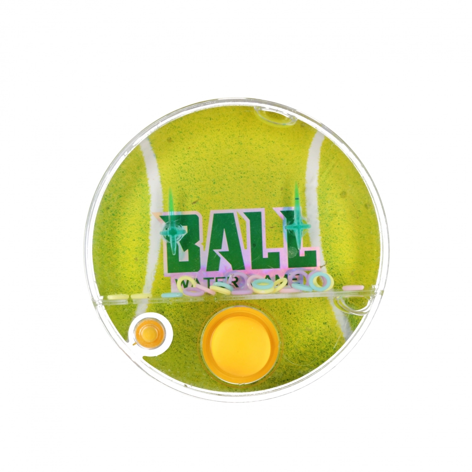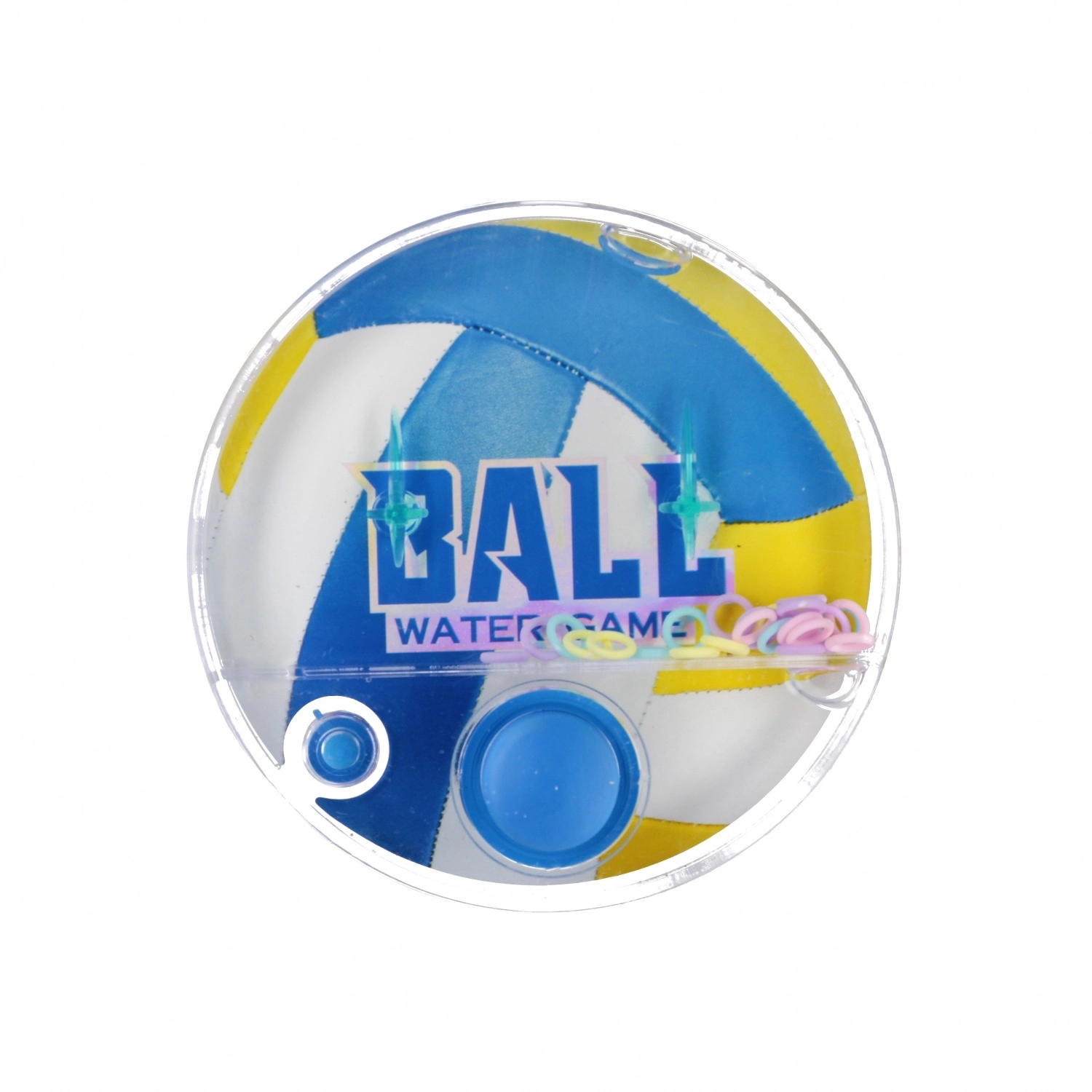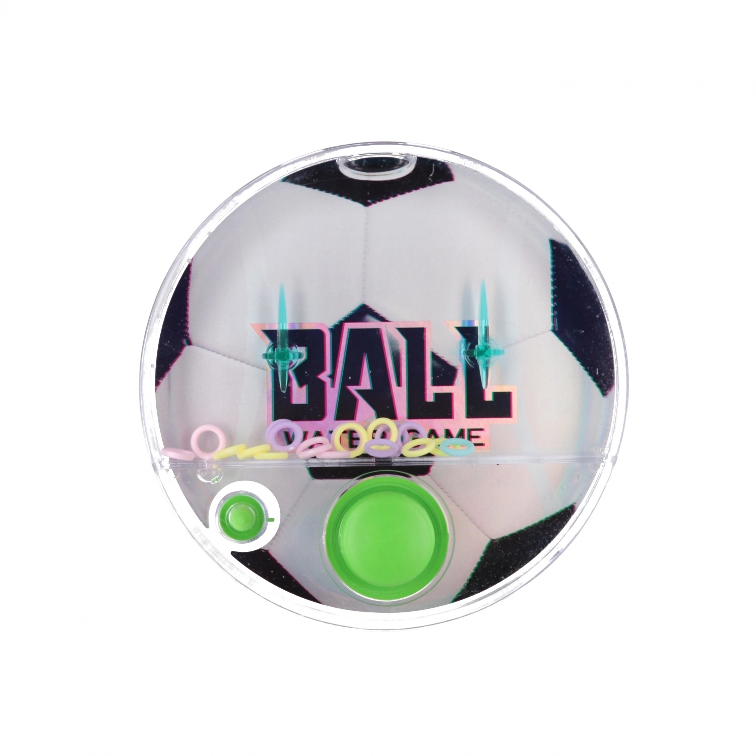 Vandspillet i form af en rund sportbold er en klassiker, der aldrig går af mode. Et gennemsigtigt kabinet med vand, farvede ringe og to pinde skaber et enkelt mål – med præcise tryk på knappen at få så mange ringe som muligt på pindene. Takket være lommestørrelsen på 10 cm passer den i både rygsæk og lomme, og er derfor et oplagt valg til bilen, ferien eller ventetiden hos lægen.