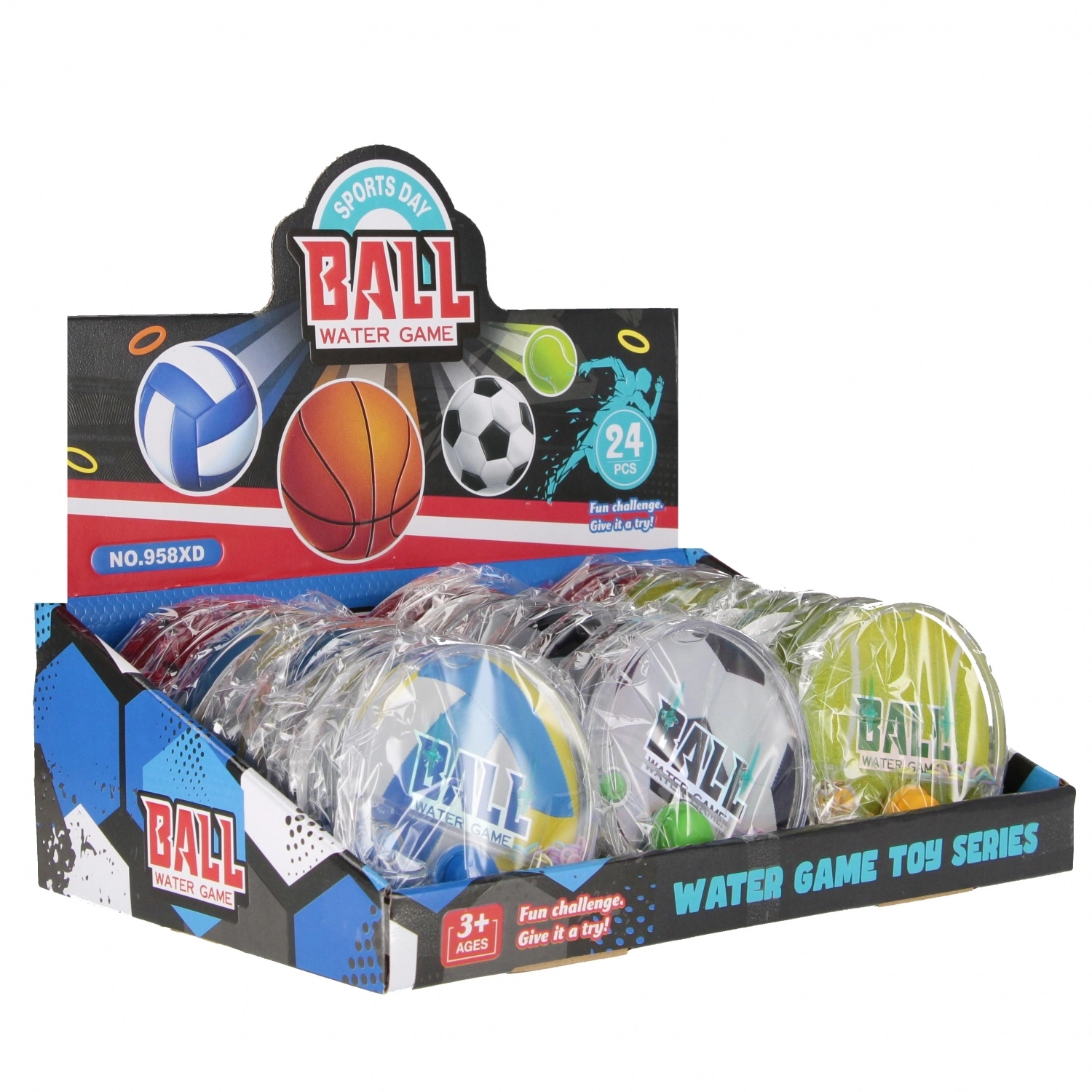 Der er 4 populære sportsmotiver at vælge imellem (fodbold, basketball, strandbold, tennis). Spillet styrker finmotorik, koncentration og tålmodighed, og det er helt mekanisk – uden batterier og uden besværlig vedligeholdelse. Hvert styk er pakket individuelt; for forhandlere findes der en grossistpakning med 24 stk.