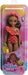 Den stilfulde BARBIE Dream Besties dukke bringer masser af sommerstemning til legen. Hun har langt, tæt hår egnet til kæmning og frisureleg, led i arme og ben for let posering og farverigt badetøj med flæser, der fremhæver hendes unikke stil. Strandinspireret tilbehør motiverer til endeløse historier ved havet og derhjemme.