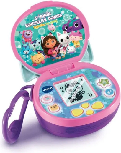 Det interaktive Vtech-legetøj inspireret af Gabis magiske hus tilbyder en farverig portion sjov og læring i ét. Børn kan løse særlige opgaver, poppe bobler, lege gemmeleg, danse med DJ Kat og forvandle det duggede spejl til en kryds-og-bolle-bane. Alt er designet til at støtte nysgerrighed, koncentration og sund selvtillid.