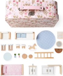 - Transportabelt design – kufferten fungerer samtidig som dukkehus.