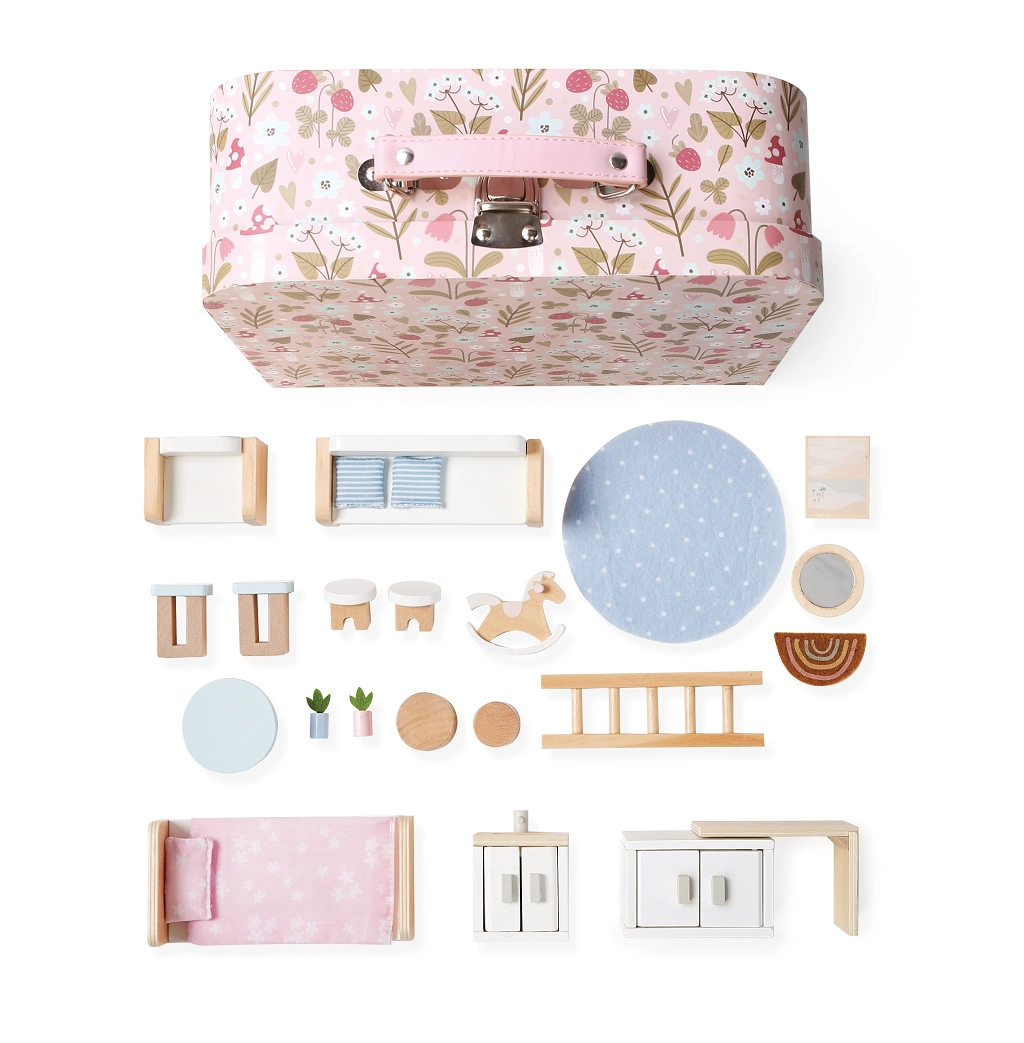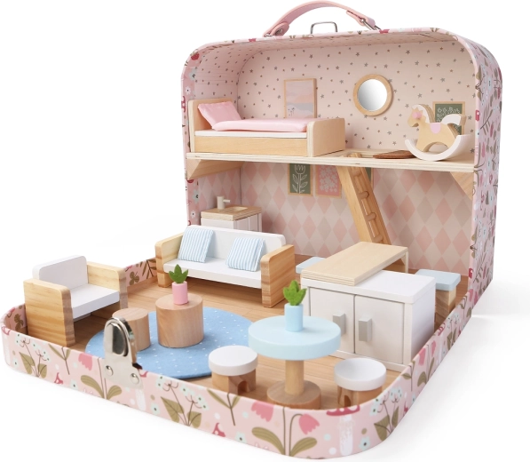 Denne kuffert-version af et dukkehus er en fantastisk gave til små dukke-elskere. Den tilbyder høj kvalitet, nem transport og mange timers kreativ leg, både hjemme og på farten.