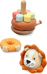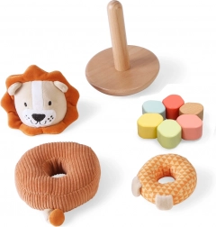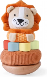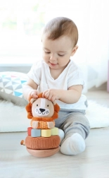 Stable-ringene Løveunge kombinerer glatte træ-dele med bløde tekstiler og behagelig plys. Børn stabler fra den største til den mindste og træner både tålmodighed og logik. Sidste trin er det sjove plyshoved af en lille løve, som fuldender hele tårnet.