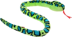 Fremstillet af blødt, meget behageligt materiale med fin fyldning for komfortabel hygge. Plastøjne giver et realistisk look og er samtidig fast monteret for sikker brug. Med sin længde på 160 cm er slangen en skøn ledsager på ture, i sengen og i legehjørnet.