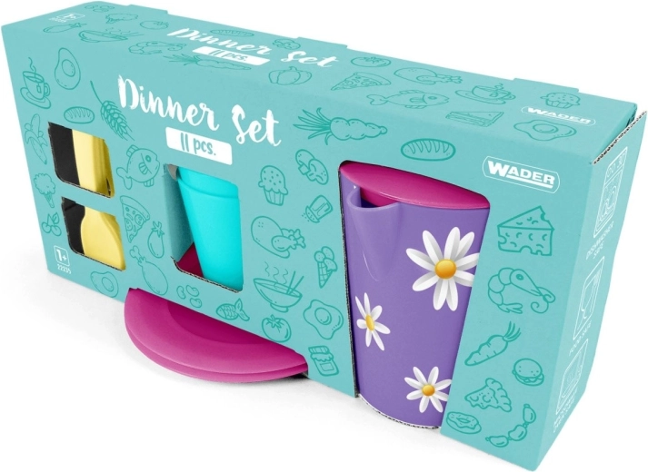 Det lille spisesæt Party Time er ideelt til små kokke, der elsker at lave mad og arrangere børnefester. Sættet indeholder en lille kande med IML-grafik med søde margueritter, 2 kopper, 2 tallerkener, 2 gafler, 2 knive og 2 skeer – i alt 11 dele. Takket være den elegante emballage er sættet også perfekt som gave.