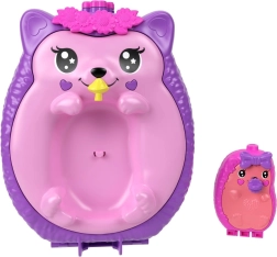 Polly Pocket Pindsvinefamilie-håndtasken er ideel til små dyreelskere og historier på farten. Når den åbnes, vises to sammenkoblede legescener – en hyggelig pasningsafdeling til ungerne og en farverig have fuld af detaljer. Der medfølger 2 mikrodukker, søde pindsvin og op til 16 tematiske accessoires til endeløs fantasi.