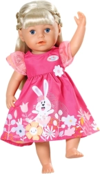 Det glade blomsterprint og den legesyge kanin giver BABY BORN-dukken en unik stil og understøtter fantasifuld leg.