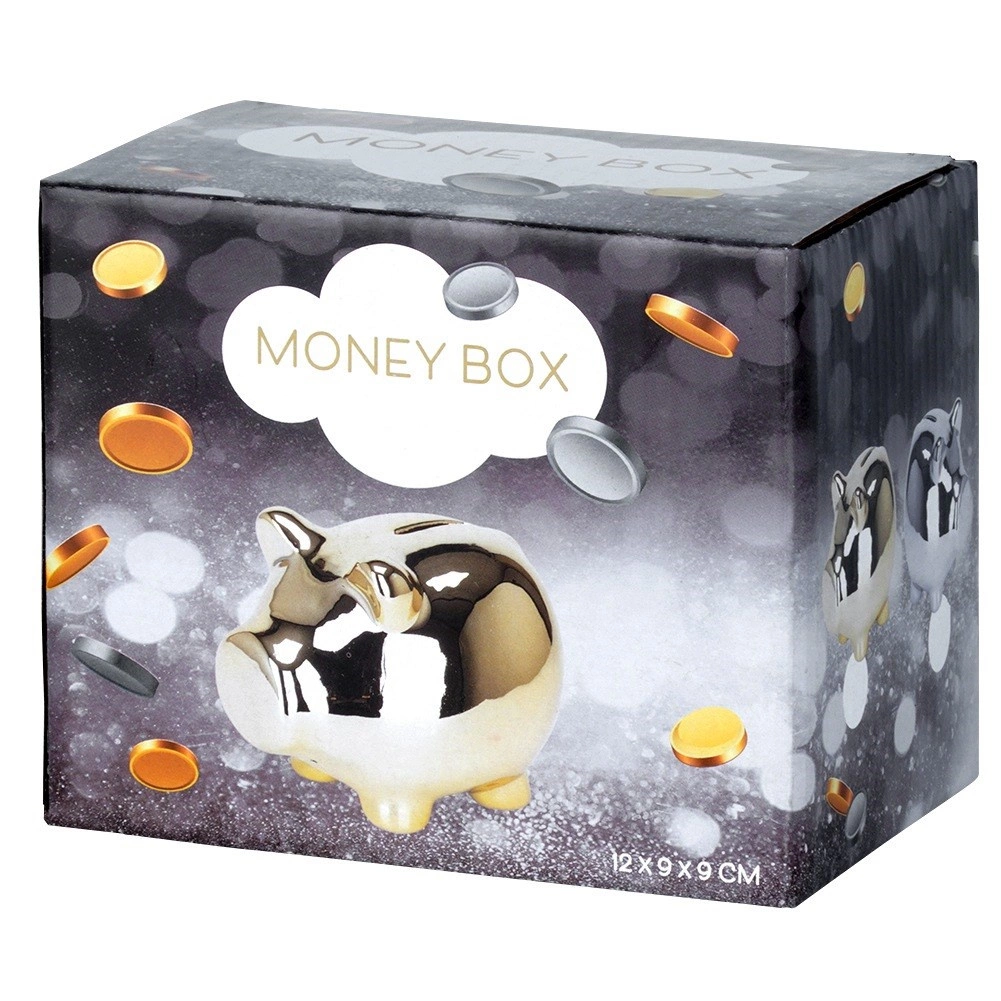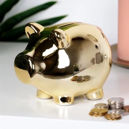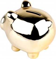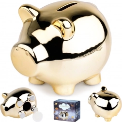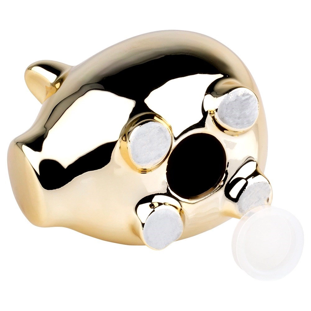 Den elegante keramiske sparegris i klassisk form kombinerer funktion og design. Den spejlblanke gyldne finish lyser op på hylde, bord eller i børneværelset og motiverer til daglig opsparing af småpenge.