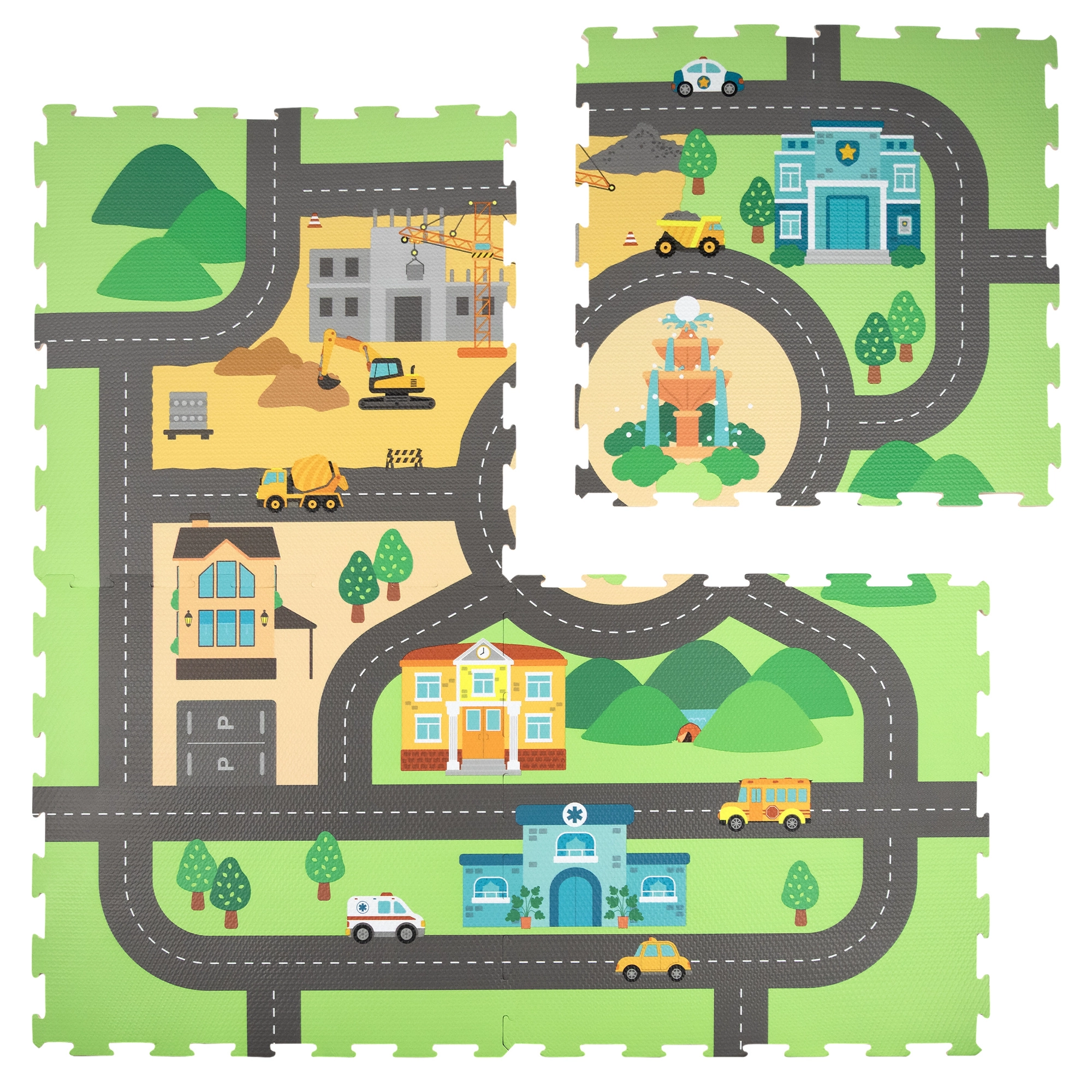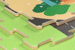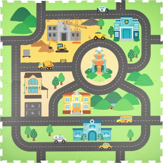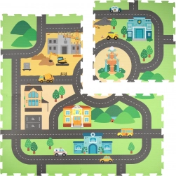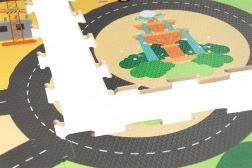 HUMBI læringsskumpuslespil kombinerer læring og leg i ét. Takket være trykte veje og bygninger kan børn nemt skabe deres egen by, planlægge ruter og udvikle fantasien. Overfladen er blød, dæmper stød og beskytter mod kulde fra gulvet.
