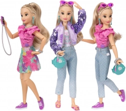 Solbriller, øreringe, taske formet som en musling/fisk, smykker og fodtøj inkl. sandaler og sneakers fuldender dukkens originale look.