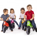 Start med en stabil trehjulet, og når det er tid til at træne balancen, skifter du blot de to baghjul ud med ét. Ideel til en glidende overgang til den første cykel.
