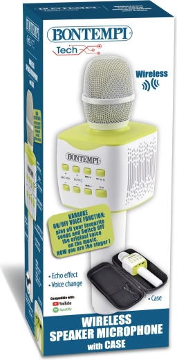 Nyd friheden ved at optræde med denne trådløse mikrofon, ideel til karaoke, præsentationer, optrædener og sjov med venner. Den tilbyder nem trådløs tilslutning, jævn kontrol af lydstyrke og ekko, stemmeforvrængningseffekt og leveres i et praktisk beskyttende etui. Et indbygget lithiumbatteri sikrer bekvem brug både hjemme og udendørs.