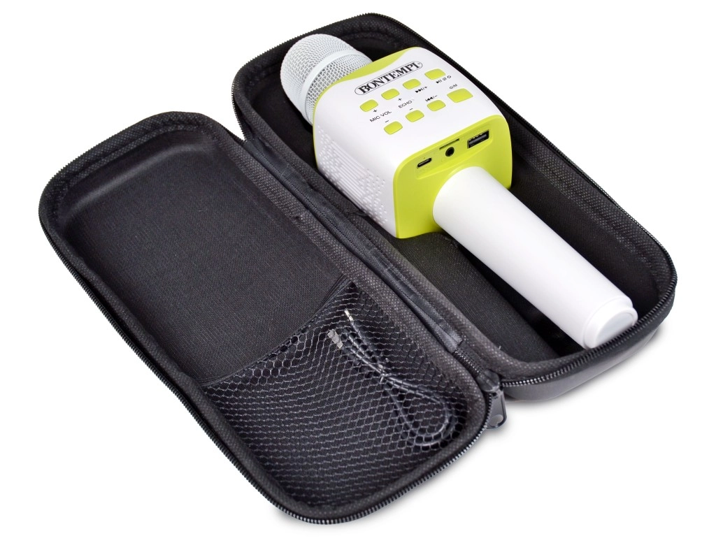 Brugervenlig betjening med regulering af lydstyrke og ekko suppleres af en sjov stemmeforvrængningseffekt, som pifter enhver optræden op. Det indbyggede lithiumbatteri giver rigelig strøm til længere tids brug uden kabler.