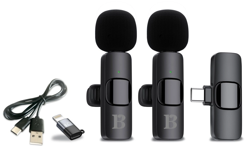 Mikrofonerne er kompatible med USB‑C enheder (moderne telefoner og tablets), så du kan tilslutte uden kompliceret opsætning. Takket være den trådløse konstruktion kan du bevæge dig frit foran kameraet, optage interviews og duo-indhold — klar lyd og praktisk clip-fastgørelse er altid lige ved hånden. De kompakte mål og den lave vægt er ideelle til skabelse på farten.