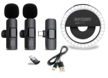 - Sæt til lyd og lys (mini ring LED + 2× trådløs clip-on mikrofon)