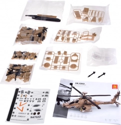 Dette tekniske byggesæt, inspireret af den legendariske AH-64, leverer en detaljeret model med den typiske skrogsilhuet, underhængt bevæbning og iøjnefaldende “shark mouth”-klistermærker. Den roterende hoved- og halerotor samt det gennemsigtige kabineoverdæk fremhæver det realistiske udseende og funktionaliteten – perfekt til udstilling og actionfyldte scener.