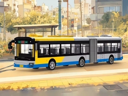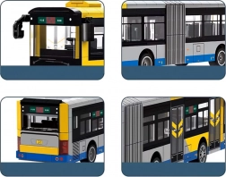 Denne detaljerede model af en ledbus i en kombination af gul, grå, sort og blå farve giver en stabil konstruktion, et realistisk udseende og en glidende forbindelse mellem køretøjets to dele. Takket være den overskuelige billedvejledning og den gennemtænkte opdeling af delene er byggeriet tilgængeligt selv for begyndere.