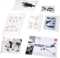 Byggesættet til passagerflyet JETLINER 320 er et godt valg for både børn og voksne, der elsker byggeri og luftfart. Af 133 omhyggeligt forarbejdede dele samler du en tomotors model i elegant hvid med blå-grønne detaljer. Takket være klistermærker får modellen et endnu mere realistisk udseende og tager sig flot ud både på hylden og under leg.