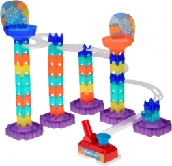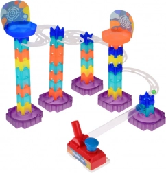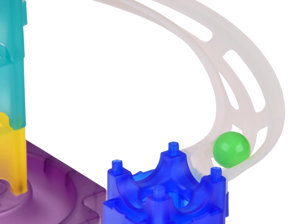 Sættet inkluderer en manuel affyrer til en dynamisk start, kurver, tragte og forbindelsesdele i livlige farver, der indbyder til leg. Byggesættet understøtter hånd–øje-koordination, teknisk tænkning og kreativitet for hele familien.